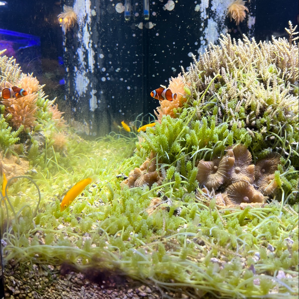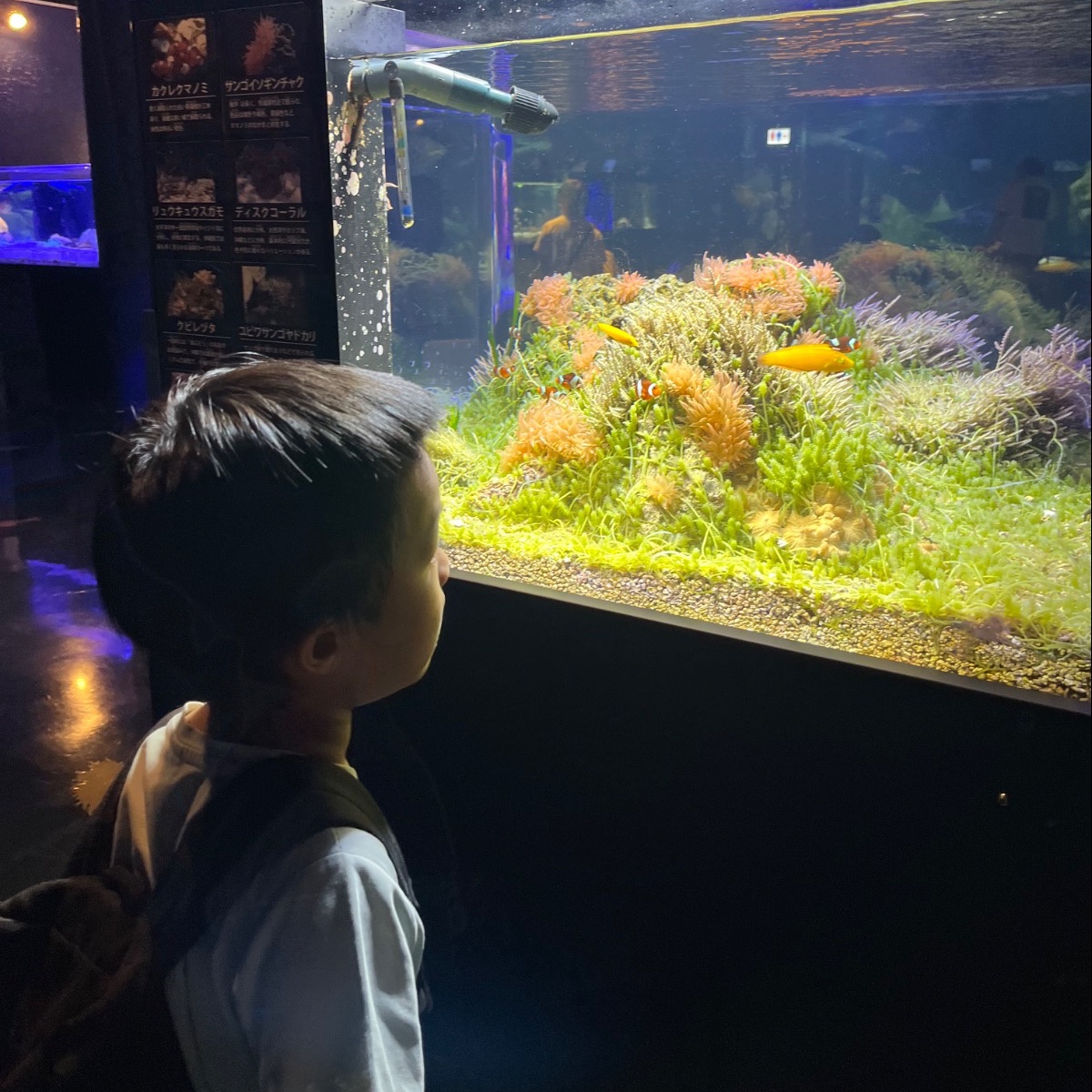 暗い室内に綺麗に光る水槽、いろんな魚たち🐠🐡