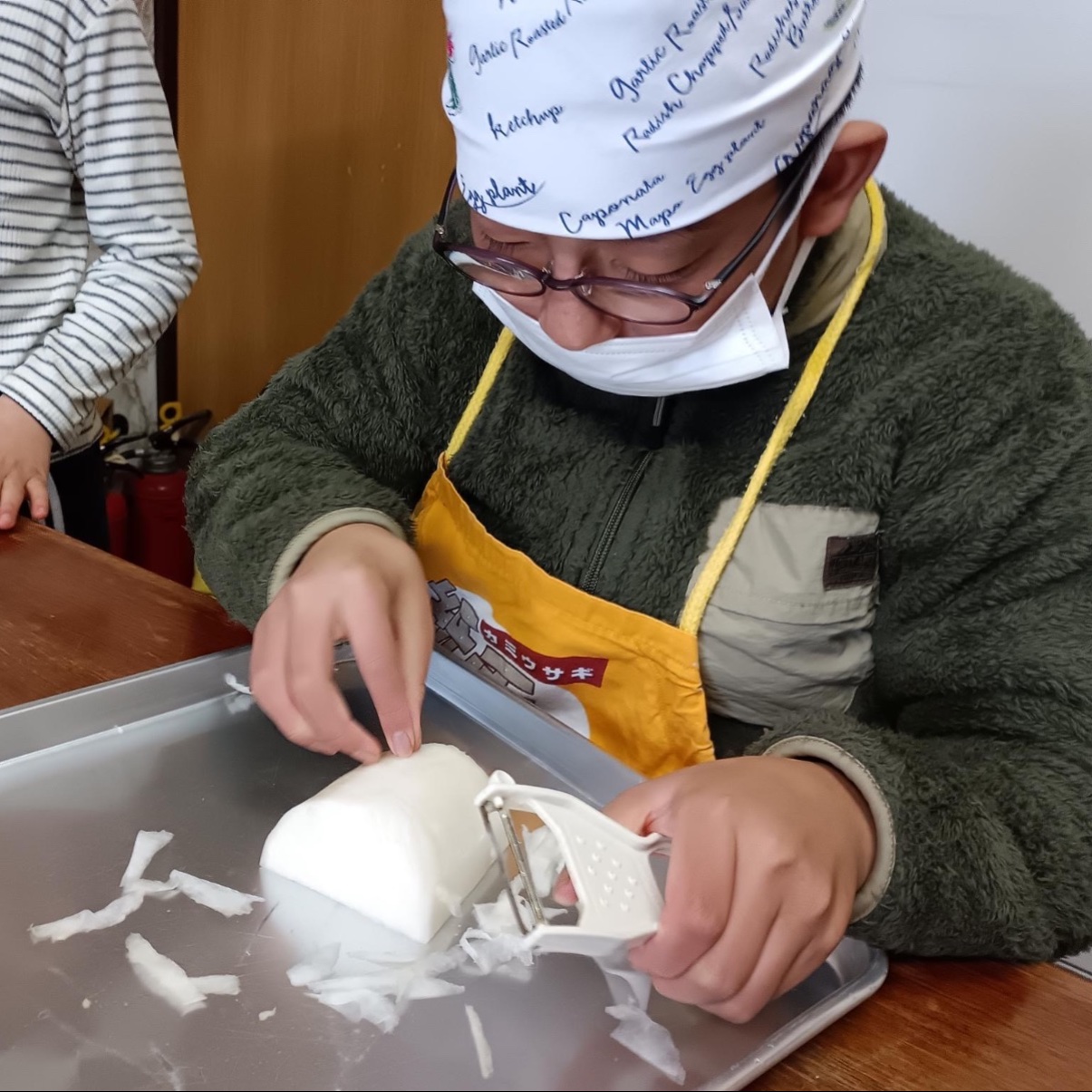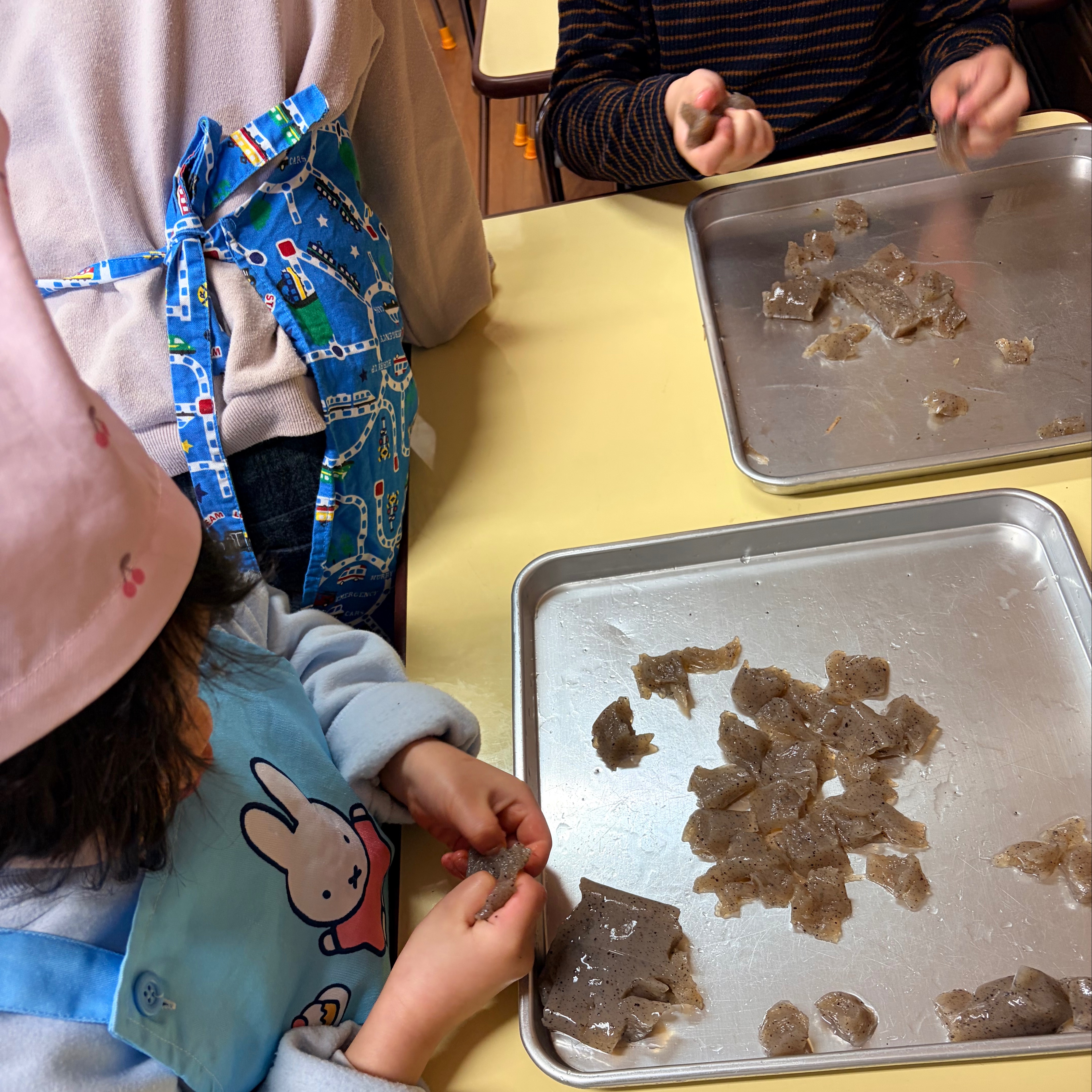 こんにゃくを手でちぎったりとお仕事がいっぱい‼️