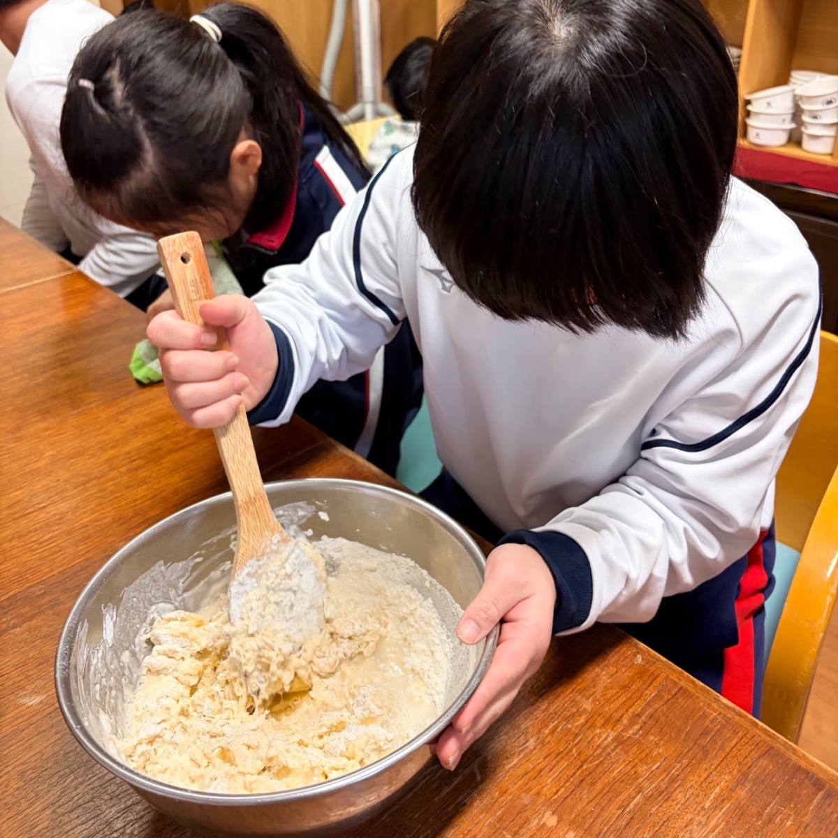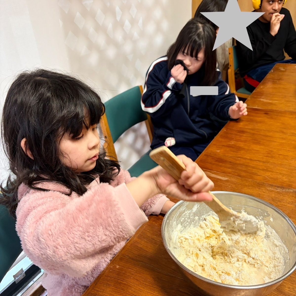 今回は、おやつ作りとお絵描き、体操、自由遊びをご紹介♩